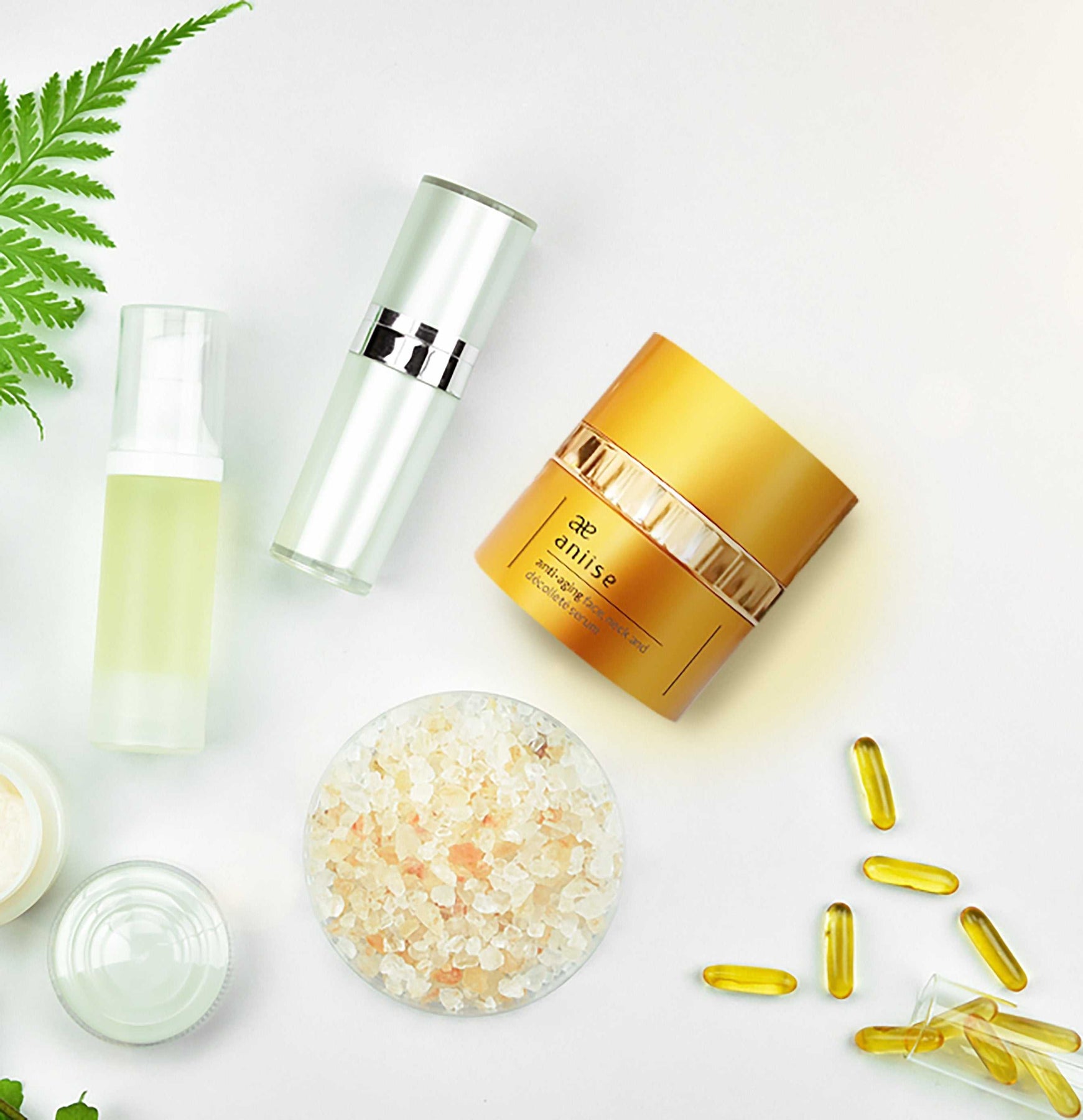 The Aniise anti-aging face, neck and décolleté serum is enriched with natural , wholesome ingredients, such as Chamomile, Rosemary, Aloe Vera and Grape-seed oil that work in synergy to calm, moisturize, tighten and rejuvenate the neck and décolletage areas.  Furthermore, Comfrey helps to revive tired, aged and wrinkled skin.